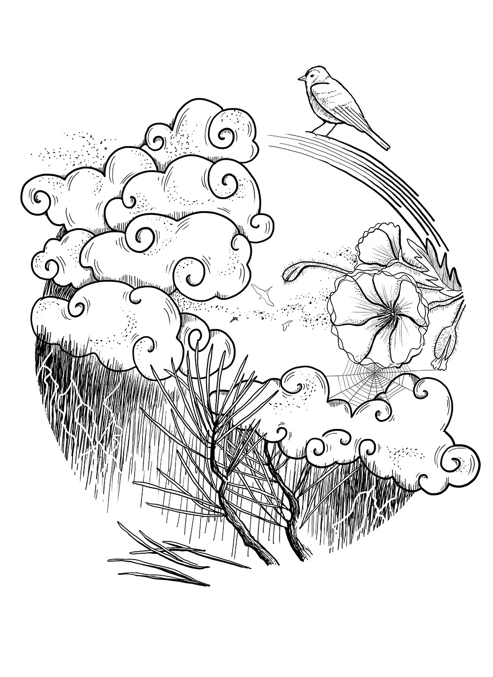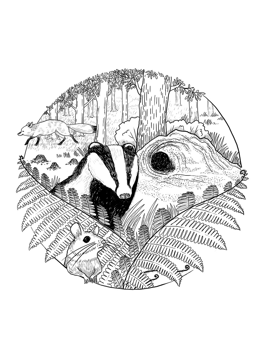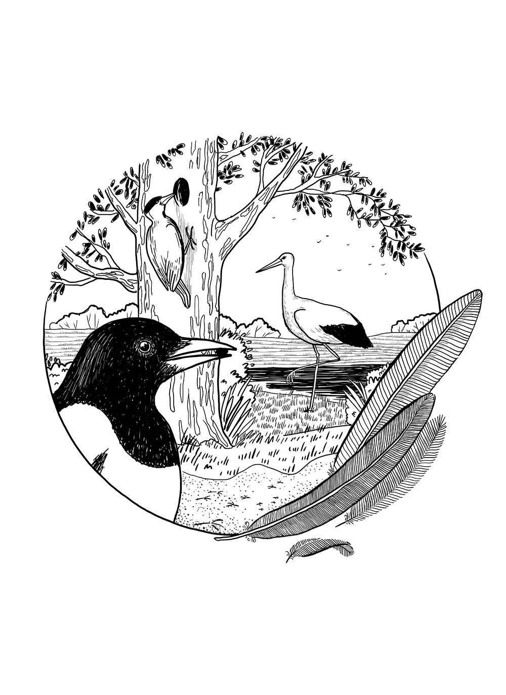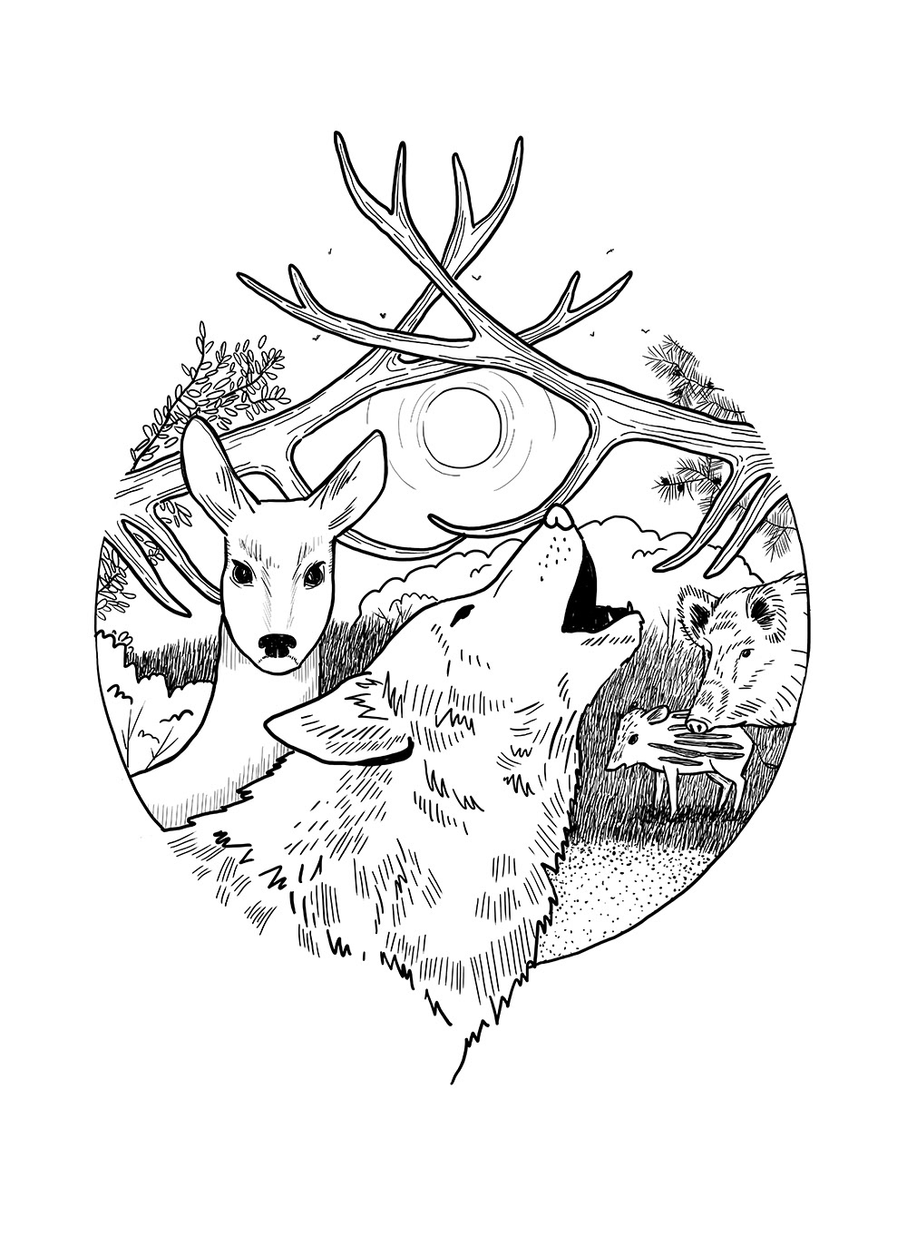 Zestaw 14 ilustracji do książki Anety Chmielińskiej "Dzikie opowieści".
